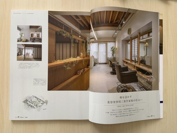 ご紹介しているのは、築35年の和風住宅をリノベーションして美容院併用住宅にした住まいの事例。和のつくりを活かした美容室は圧巻で、居住空間と店舗空間のつながりは独特。自然とリズムが生まれる暮らしのエリアも魅力です。